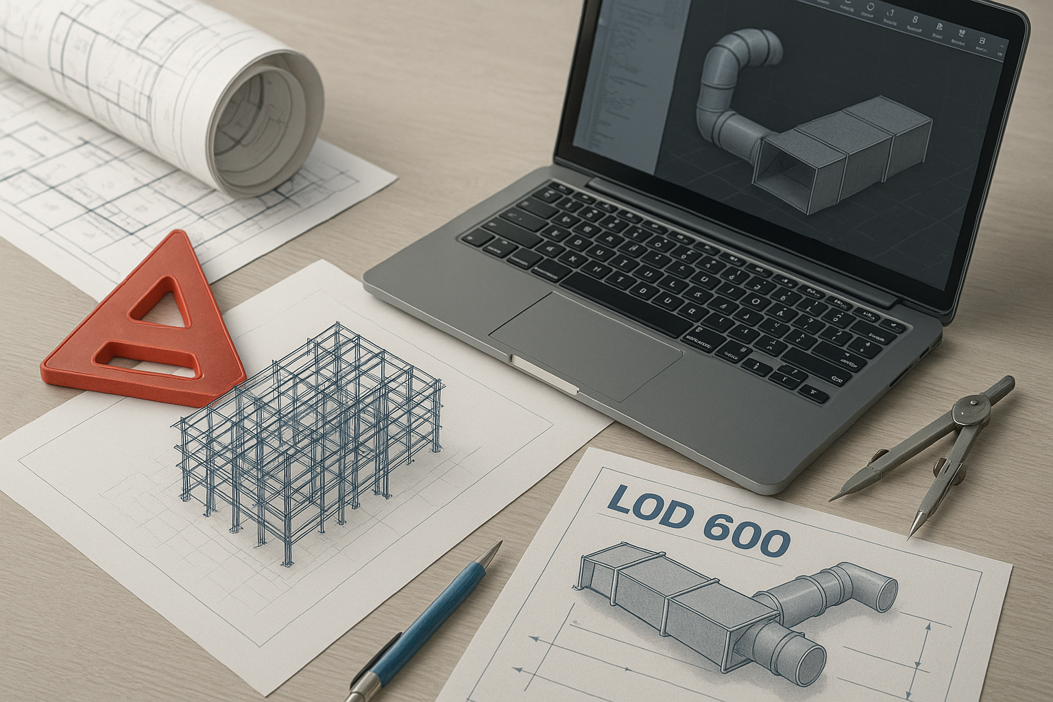 Integra componentes reales con un mayor nivel de precisión, incluyendo elementos como soportes, colgantes o fijaciones, favoreciendo la coordinación entre disciplinas.